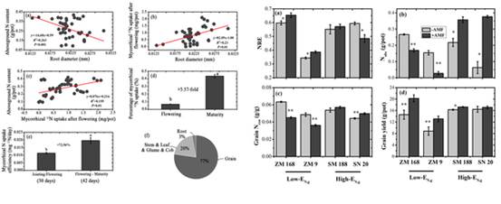 提高氮素利用效率(NUE)以降低氮素投入而改善农业环境并节约生产成本是实现小麦可持续生产的主要目标。然而,AMF是否及如何影响小麦NUE目前并不清楚。本研究首先提出了概念模型(图1),并设计了3个独立且互补的试验进行阐明根系和AMF对小麦氮素吸收和转化利用上的贡献。