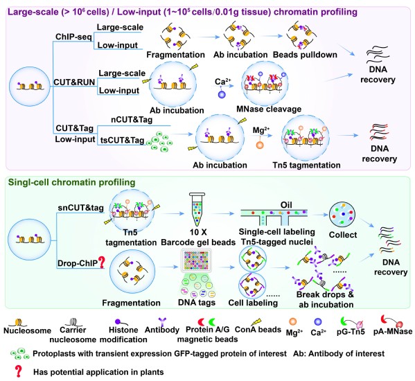近日,51吃瓜网 张文利课题组受邀在Trends in Plant Science上发表了题为“Low-input single-cell based chromatin profiling in plants”的综述文章。