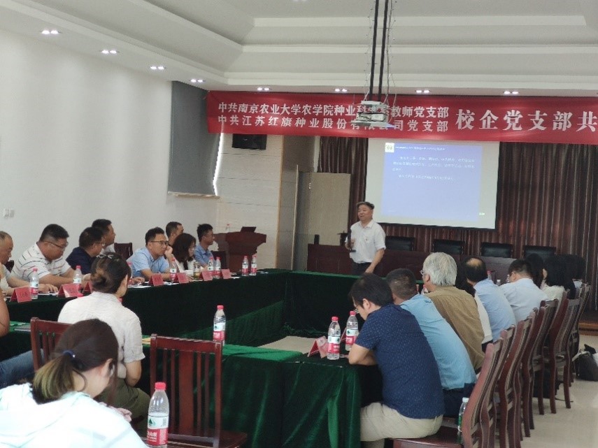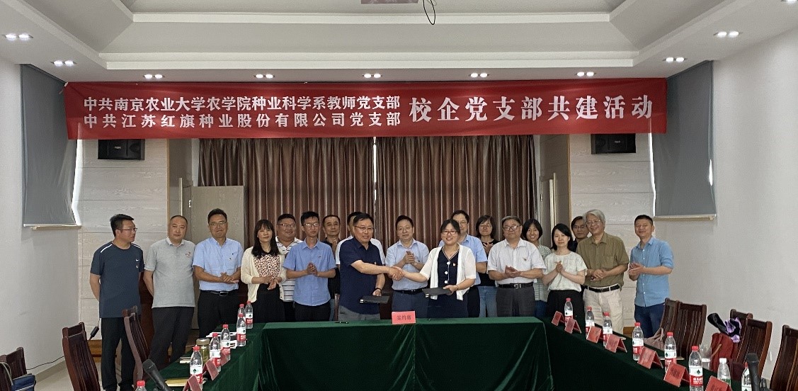 江苏红旗种业股份有限公司成立于2001年,是集品种选育、良种繁育、种子营销于一体的国有控股种子企业,同时也是“新三板”挂牌企业、国家高新技术企业、江苏省农业产业化重点龙头企业、江苏省种业骨干企业、江苏省农业科技型企业,中国种子协会信用评价“AAA”级企业。继2020年红旗种业与我院签订科研业务合作协议以来,此次双方在校企党支部共建方面进一步深入交流,拟在组织建设、种业科技合作研发、本科生实践教学基地建设、研究生工作站建设等方面深入合作,合力打造现代种业校企合作党支部共建标杆。此次活动也是我院种业科学系教师党支部和仲英作物种业创新中心“走进种业”系列特色活动之一,对于种业科学系和仲英作物种业创新中心将党建与业务工作双融合双促进具有重要推动作用。
