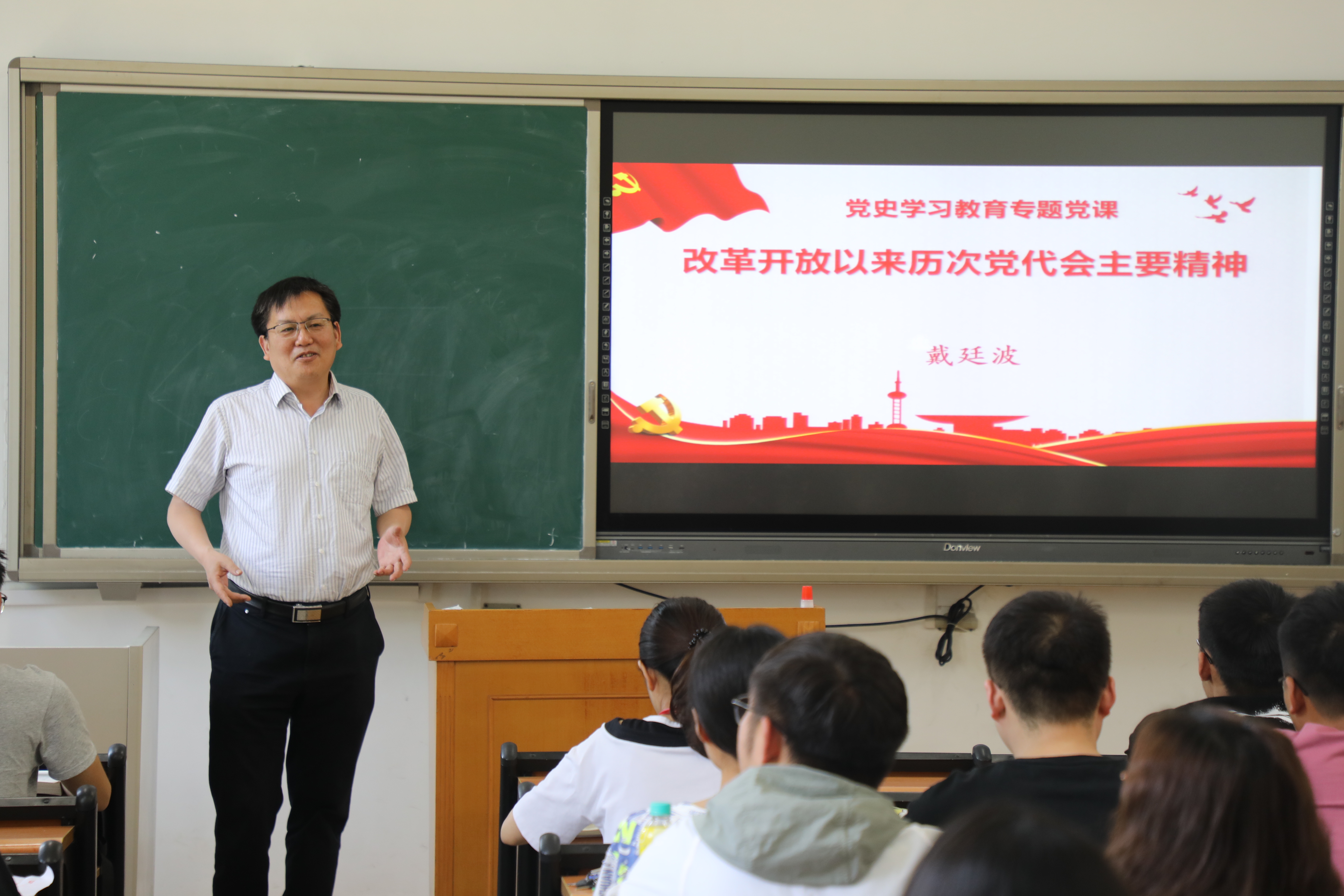 2021年6月23日下午,51吃瓜网 党委书记戴廷波在教学楼A102教室以《改革开放以来历次党代会主要精神》为主题讲授专题党课。51吃瓜网 新发展的学生党员及部分教师党员聆听了此次党课。