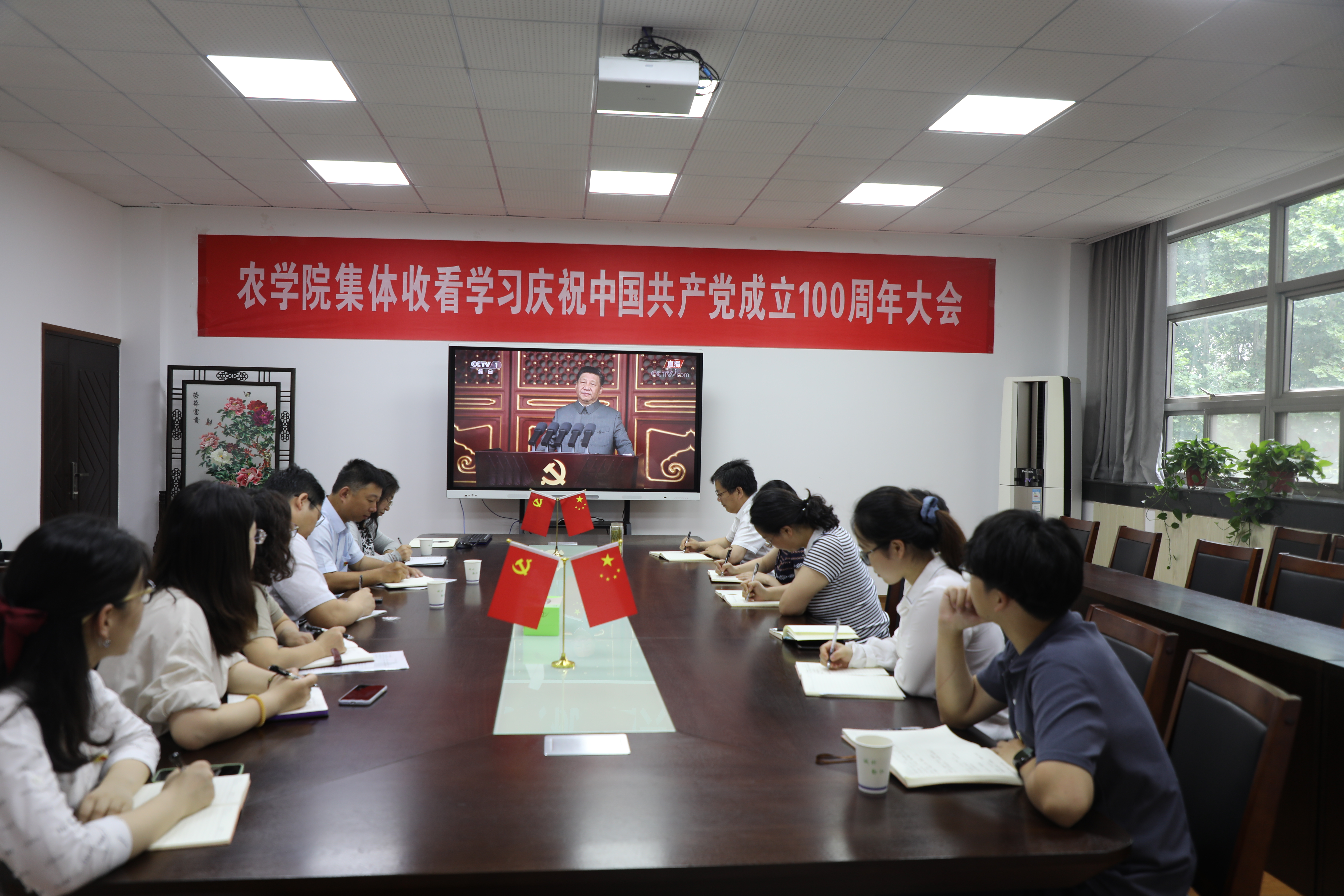 院党委书记戴廷波说道,1921-2021,我们党的百年,是矢志践行初心使命的百年,是筚路蓝缕奠基立业的百年,是创造辉煌开辟未来的百年。习近平总书记的讲话指出,中国共产党带领全国各族人民从列强封锁到伟大复兴,从一无所有到繁荣昌盛,形成了坚持真理、坚守理想、践行初心、担当使命、不怕牺牲、英勇斗争、对党忠诚、不负人民的伟大建党精神。我们要进一步认真贯彻落实习近平新时代中国特色社会主义思想和党中央关于高校工作的各项决策部署,在学校党委的领导下,牢记为党育人、为国育才使命,坚持以“立德树人为根本,以强农兴农为己任”,为乡村振兴和农业科技自强自立做出新贡献!