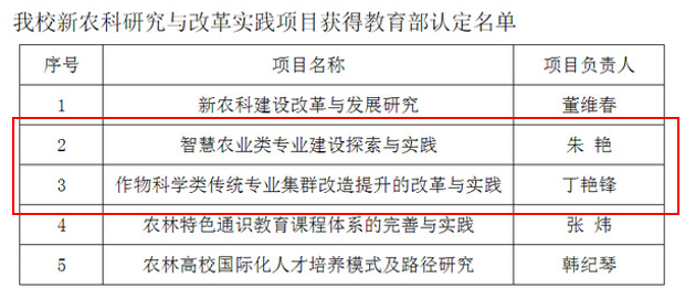 我院2个新农科研究与改革实践项目获教育部认定