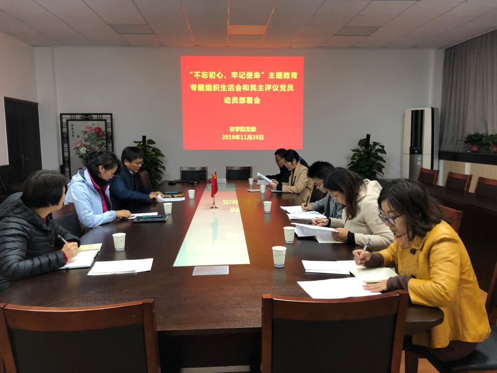 按照中央和教育部党组的工作部署,根据学校《关于在“不忘初心、牢记使命”主题教育中召开专题组织生活会和民主评议党员的通知》文件要求,2019年11月28日下午,我院召开动员部署会议。院党委书记戴廷波、副书记殷美及各教师党支部书记参加此次会议。
