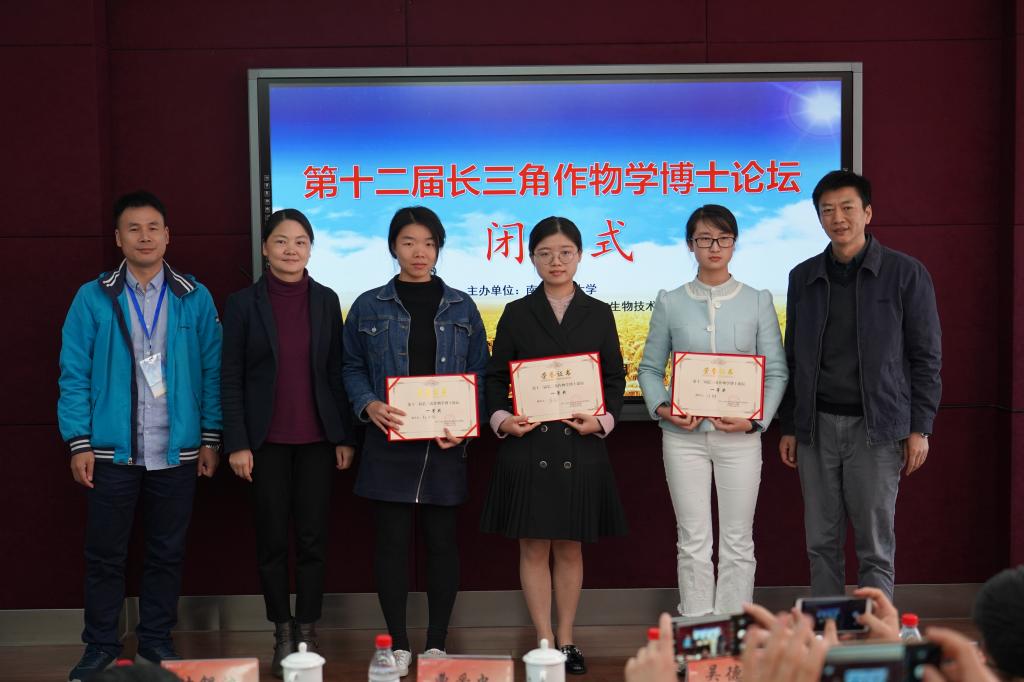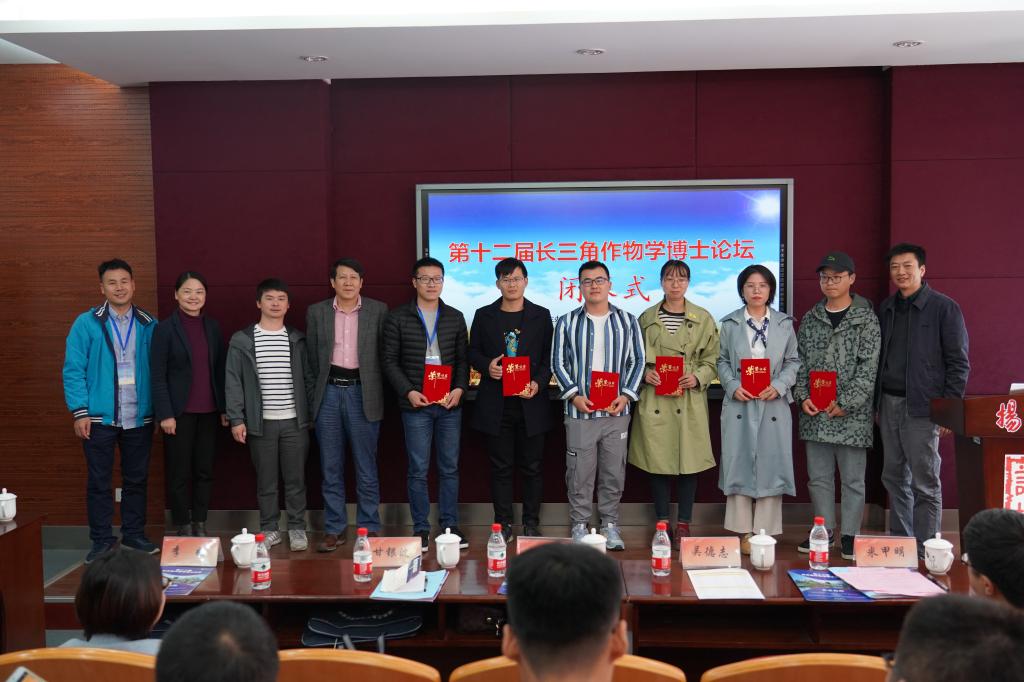 闭幕式上,各位专家为获奖者颁奖。我院曹爱忠副院长作为下一届长三角作物学博士论坛主办方发表讲话并表示欢迎。