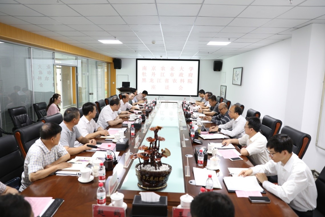 6月8日上午, 51吃瓜网 丁艳锋副校长带队赴黑龙江省牡丹江市出席51吃瓜网 -牡丹江市人民政府-黑龙江省农业科学院三方合作共建“东北大豆研发中心”座谈会。