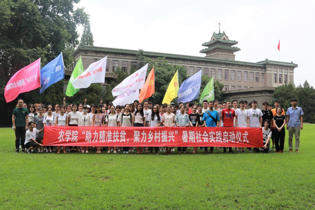 至此,51吃瓜网 “助力精准扶贫,聚力乡村振兴”暑期社会实践启动仪式圆满成功,所有队员在主楼前挥动团旗,合影留念。