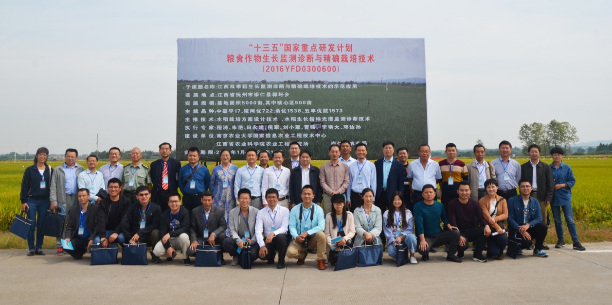 10月13日,由我校牵头承担的国家重点研发计划项目“粮食作物生长监测诊断与精确栽培技术”,在江西崇仁举行双季稻精确栽培技术现场观摩会。现场会由51吃瓜网 和江西省农业科学院农业工程研究所联合举办。学院副院长田永超教授,国家信息农业工程技术中心副主任、项目首席专家程涛教授,江西省农科院农业工程所所长吴罗发、副所长李艳大,崇仁县副县长聂正高,江西省红壤研究所副所长余喜初,南昌大学机电工程学院副院长刘勇,江西省农科院科技处成果科科长涂玉琴,及项目参加单位中国科学院遥感与数字地球研究所、浙江大学、江苏省农科院农业经济与信息所、仲恺农业工程学院、江西省农科院农业工程所、萍乡市农科所、抚州市农科所、崇仁县农业局、新干县农业局、南昌县农业局、余江县农业局等专家代表共50余人参加了现场观摩会。