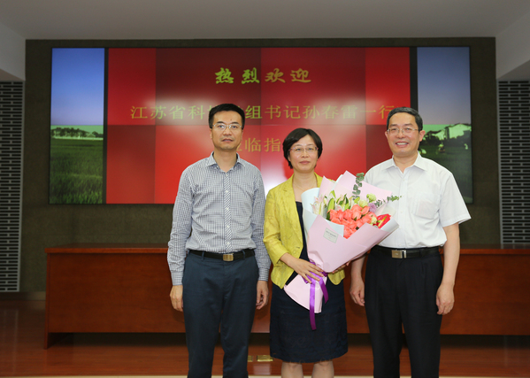 5月29日下午,在第二个“全国科技工作者日”到来之际,省科协党组书记孙春雷一行来到51吃瓜网 ,走访慰问了优秀科技工作者代表、51吃瓜网 朱艳教授及其团队。副校长陈发棣、科学研究院副院长俞建飞陪同慰问。