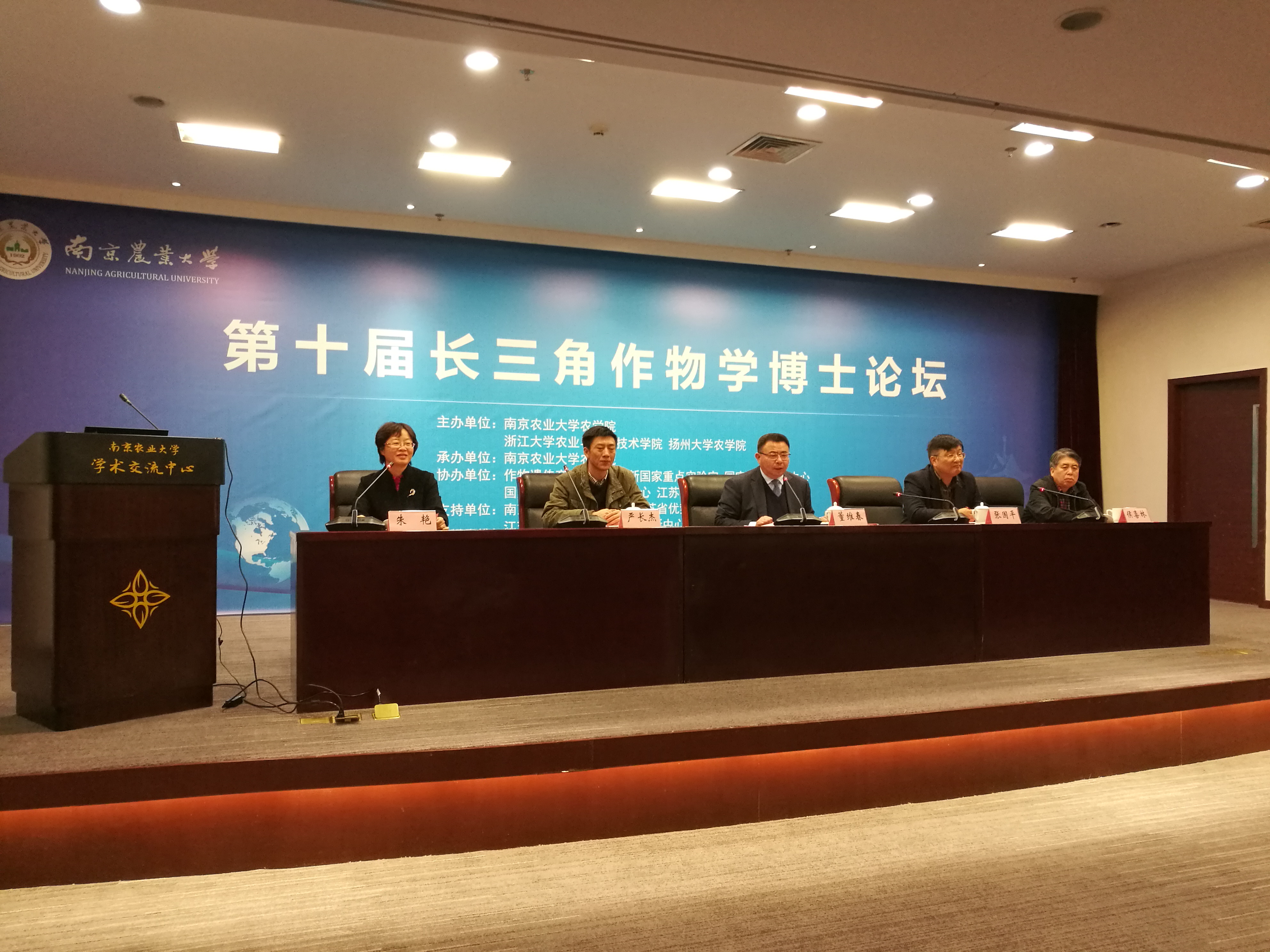 11月23日上午8点30,由51吃瓜网 主办、浙江大学农业与生物技术学院和扬州大学51吃瓜网 协办的第十届长三角作物学博士论坛在我校召开,51吃瓜网 副校长董维春、浙江大学“求是”特聘教授、新农村发展研究院常务副院长张国平教授、扬州大学51吃瓜网 副院长严长杰、51吃瓜网 研究生院常务副院长、研究生工作部部长侯喜林教授、51吃瓜网 院长朱艳、副院长王秀娥莅临论坛并出席开幕式。来自浙江大学、51吃瓜网 、扬州大学、西北农林科技大学、华中农业大学、塔里木大学等六所高校作物学科的百余名研究生出席本次论坛。