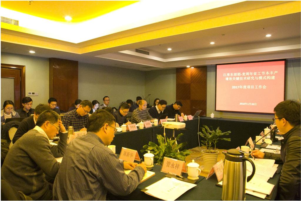 “江淮东部稻-麦周年省工节本丰产增效关键技术研究与模式构建”年度工作会于20日下午举行。各子课题汇报了2017年度工作总结和2018年研究计划,咨询专家组对项目研究进展给予充分肯定,指出了项目执行中存在的问题并给予具体指导。参加单位围绕2018年度协同攻关、联合试验方案开展讨论并达成共识。