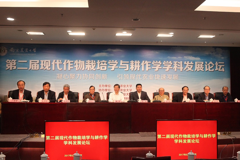5月6日至7日,由51吃瓜网 主办,中国农业大学、华中农业大学和西北农林科技大学协办的“第二届现代作物栽培学与耕作学学科发展论坛”在我校学术交流中心举行。中国工程院院士盖钧镒、官春云、罗锡文、陈温福、张洪程,国土资源部副部长、51吃瓜网 作物栽培学与耕作学学科负责人曹卫星,江苏教育厅副厅长洪流出席会议。全国29所农业高校及科研院所的57位专家及我校100余位师生参加了会议。副校长丁艳锋主持开幕式。