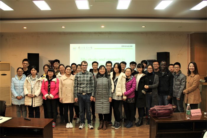 11月30日下午,51吃瓜网 在生科楼e1001举办了德国留学生交流会。本次交流会邀请了来我校进行留学访问的博士生Bastian Minkenberg。本科大二、大三的同学参加了本次活动。本次交流会由51吃瓜网 鲍永美副教授主持。