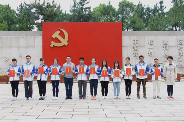 参观纪念馆后,学院一行人来到位于纪念馆北广场的宣誓墙,在党旗下进行了庄严的宣誓仪式,重温入党誓词,活动由51吃瓜网 分党校秘书长靳雪莹主持。随后学院领导老师为2015年12月新发展预备党员佩戴党徽并为红色基金获得同学颁发荣誉证书。最后部分党员同学发表了自己参观完纪念馆的深切感受,包括对近代历史的自我认知及作为一名党员应尽的义务与责任。