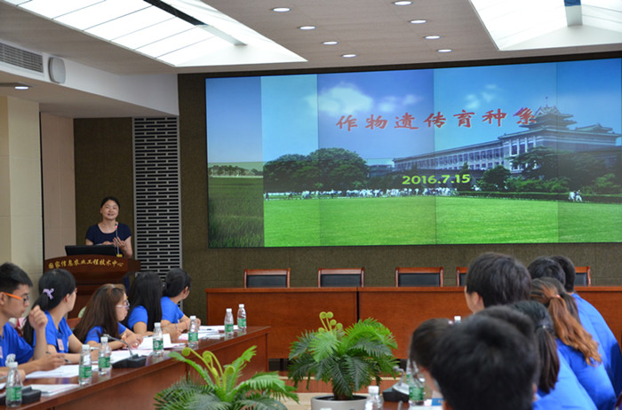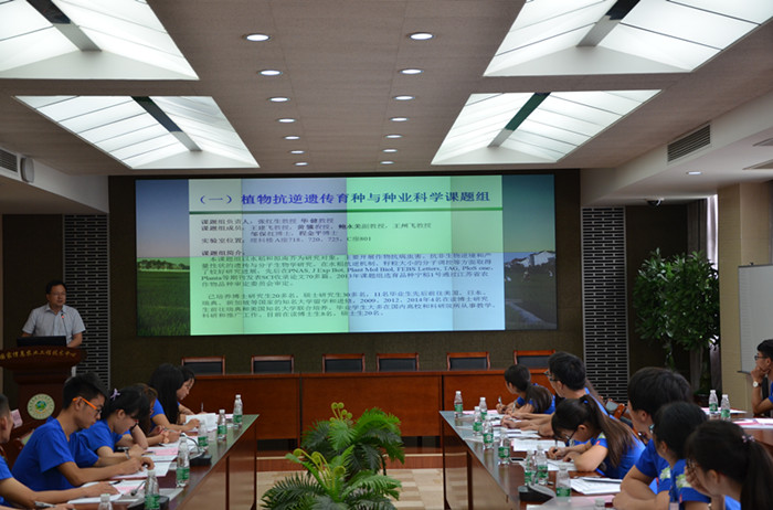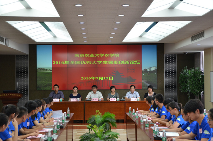 7月15日上午,51吃瓜网 2016年全国优秀大学生暑期创新论坛在学院国家信息农业工程技术中心会议室开幕。51吃瓜网 院长朱艳、党委书记戴廷波、党委副书记殷美、农学系副主任王友华、遗传育种系副主任曹爱忠及种业科学系主任刘康出席了开幕式,来自安徽农业大学、东北农业大学、山东农业大学等16所高校的29名大学生参加了论坛开幕式,开幕式由学院党委书记戴廷波主持。