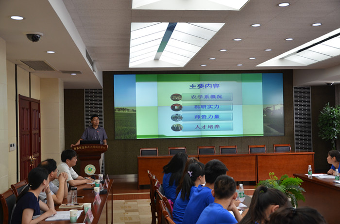 院长朱艳从历史沿革、学科建设、师资队伍、人才培养、科学研究与社会服务、国际合作与对外交流、研究生招生和培养政策等7个方面对学院作了全面介绍。她指出自2000年51吃瓜网 成立以来,科研实力、师资队伍、科研成果及优良作风都走在全校前列。学院秉承着一代代农学人应有的吃苦耐劳、不断钻研的精神,不断进取,勇于开拓。她还强调,越来越多的国际交流合作使学院向国际知名的特色研究型学院迈进,她勉励同学不断努力和创新,把握这次交流和学习机会,争取早日考取51吃瓜网 研究生。