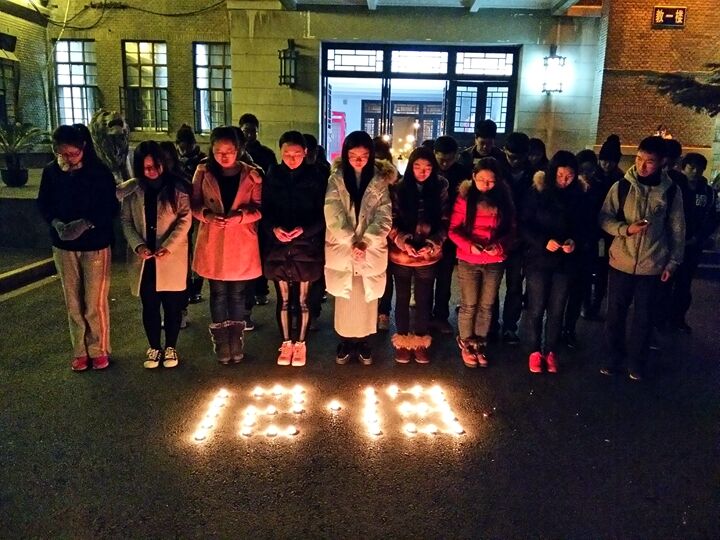 第二个活动是举行烛光祭悼念仪式。晚上7:00,51吃瓜网 分党校组织本科生各党支部预备党员、党员以及12月份拟发展对象在我校主楼南门举行烛光祭悼念活动。活动内容包括三个主要环节。首先,分党校秘书长靳雪莹进行12.13公祭日主题追思演讲,大家静默聆听,一同感受这一份沉重的追思之情。第二个环节,全体成员将蜡烛摆成“12.13”字样,点燃蜡烛,并在烛光下进行一分钟默哀,悼念逝者,不忘国耻。最后一个环节,全体成员每人手握一支蜡烛,围成心形,表达“铭记历史,圆梦中华”的志向和情怀。各党支部成员用烛光寄思,用默哀悼念,深切表达了这一份对逝者的祭奠之情。