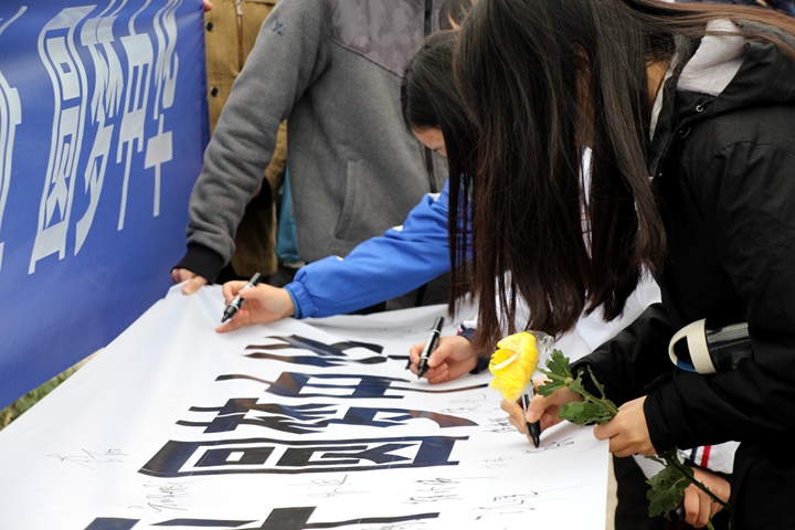第一个活动是参加侵华日军南京大屠杀遇难同胞东郊丛葬地举行的悼念仪式。早上8:00,参与人员在操场集合,进行庄严的升旗仪式。大家带着沉重的心情,注视着冉冉升起的国旗,缓缓的唱出国歌。升旗仪式结束后,全体人员前往侵华日军南京大屠杀遇难同胞东郊丛葬地举行悼念仪式。仪式开始前,全体参加悼念仪式的同学和前来悼念的社会人士在“铭记历史 珍爱和平 圆梦中华”的横幅上签字,以表不忘国耻,圆梦中华之决心。签字活动结束后,分党校秘书长靳雪莹带领全体党员和预备党员重温入党誓词,通过重温入党誓词,使党员审视自我,帮助党员实现自我批评,能够更加坚定党员的党性和为共产主义奋斗终身的理想信念。上午10:00,凄厉的警报声再一次作为整个国家的背景音长鸣于耳畔,全体默哀。默哀结束后,同学们将菊花献于纪念碑上,并且绕纪念碑一周,以表哀思。