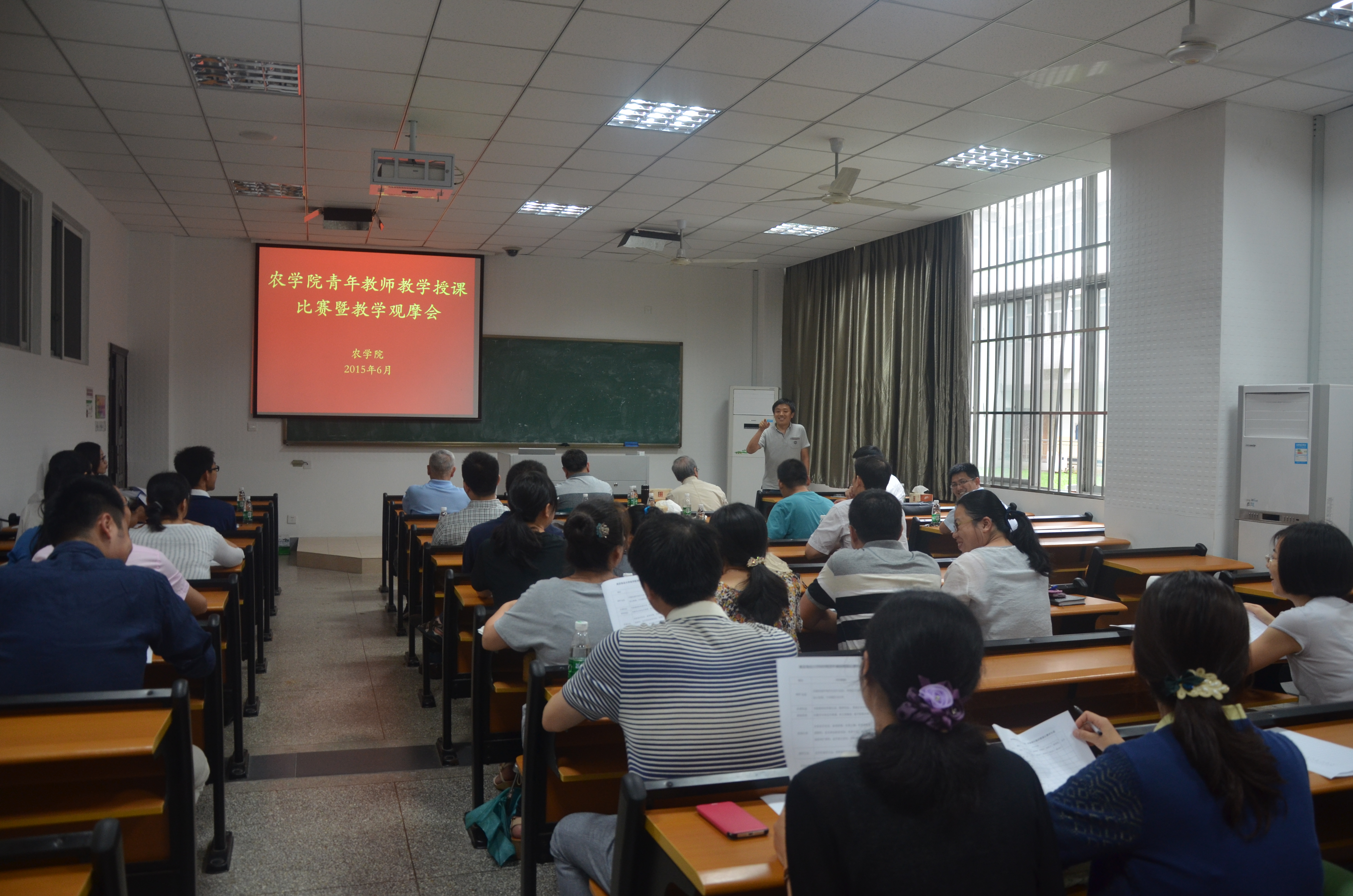 青年教师授课比赛。国家教学名师强胜、校教学督导洪德林、院教学督导路季梅以及戴廷波、朱艳、卞新民、黄骥担任了评委,学院所有40岁以下的青年教师观摩了授课比赛。