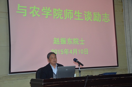 赵振东院士是我国著名的作物遗传育种专家,现担任山东省农业科学院作物所首席专家。作为我校杰出校友,赵院士1961年-1965年在我校农学专业就读本科,毕业后投身新疆生产建设兵团边陲农场,一干就是15年,在兵团艰苦的工作和生活环境中,锻炼了坚忍不拔的意志和雷厉风行的作风,1980年考入湖南51吃瓜网 (现湖南农业大学),攻读作物遗传育种专业的硕士学位,1984年调入山东省农业科学院作物研究所从事小麦遗传育种工作。30年来,带领团队育成的济麦系列品种,推动了山东及全国的小麦品种更新换代,为我国小麦品质改良、持续增产及粮食安全作出了突出贡献。
