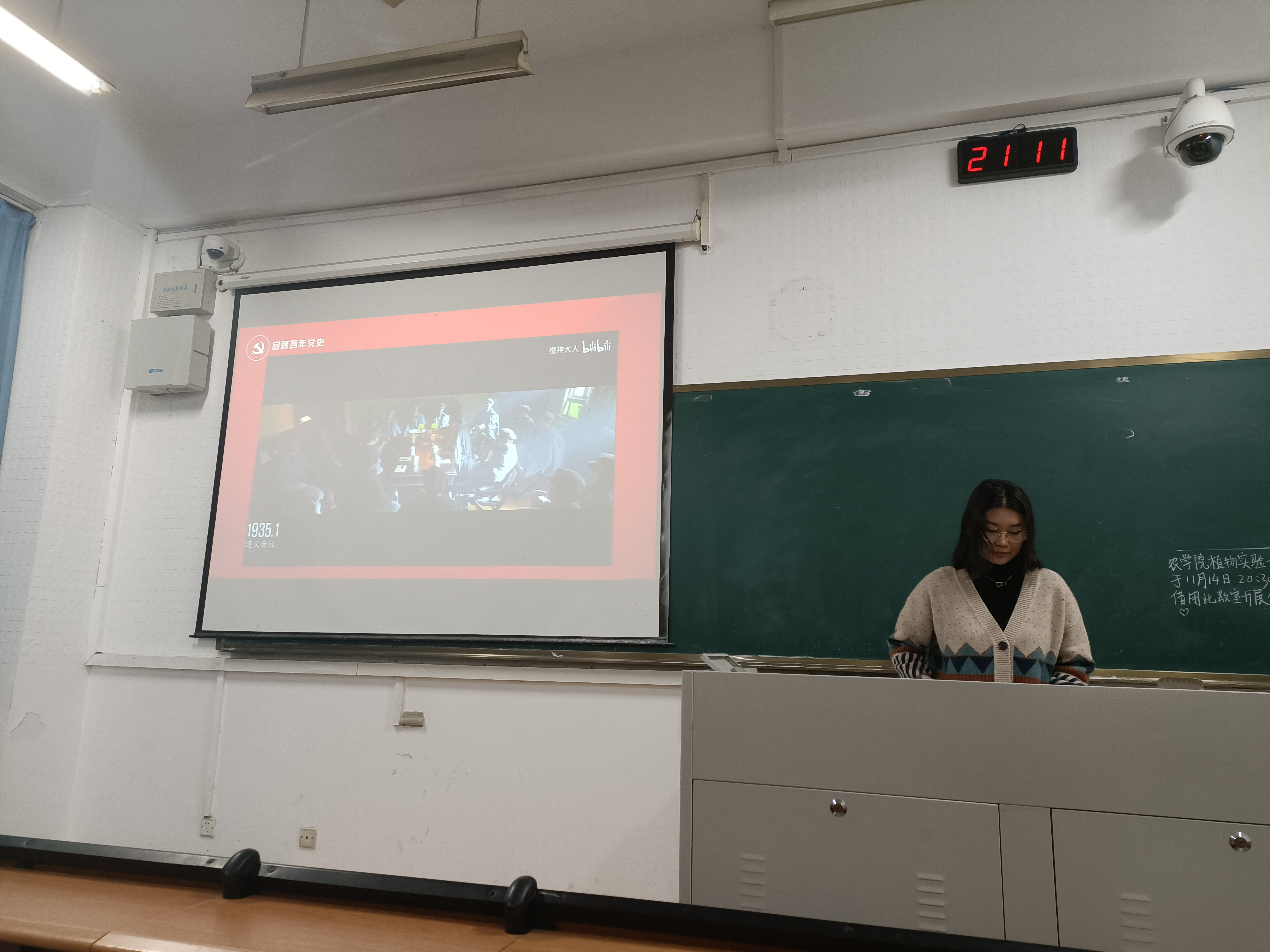 王令涵同学首先为支部同学介绍了中国共产党的百年奋斗历程。她总结了中国共产党在新民主主义革命时期、社会主义革命和建设时期、改革开放和社会主义现代化建设新时期、中国特色社会主义新时代这四个时期做出的主要贡献,让同学们更清晰地理解中国共产党不忘初心、牢记使命的精神在百年中是如何形成并传承至今的。