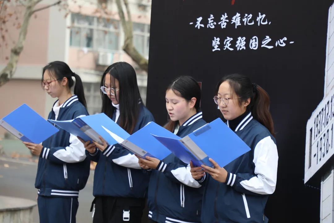 朗诵一首诗歌。正视历史,向历史的伤疤致哀。12月12日上午,4名入党积极分子周婕、张凌蓉、普艳红、薛润佳共同朗诵国家公祭日缅怀悼念主题诗歌《南京南京》,再一次提醒全体同学们:历史不能忘却,未来仍需警惕。和平因自强而永存,铭记之外,更要坚定强国之心,才能让悲剧不再重演。
