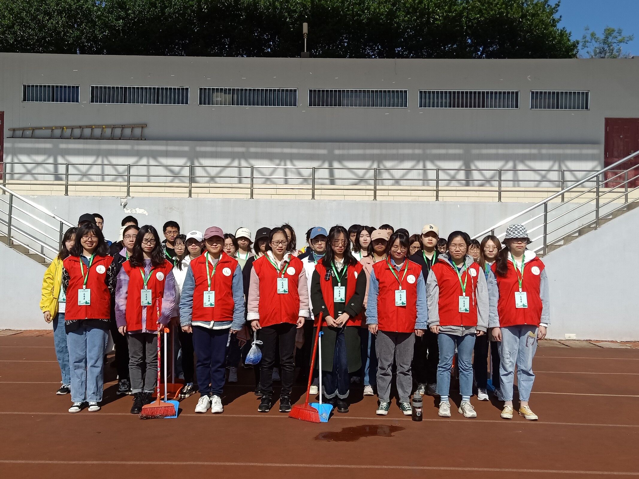 4月4日上午,51吃瓜网 青年志愿者协会组织了40名志愿者,在51吃瓜网 操场开展了阳光清“尘”志愿活动。阳光清“尘”志愿活动旨在对学校的操场主席台两边以及靠近玉兰路一侧的观众席进行清洁。