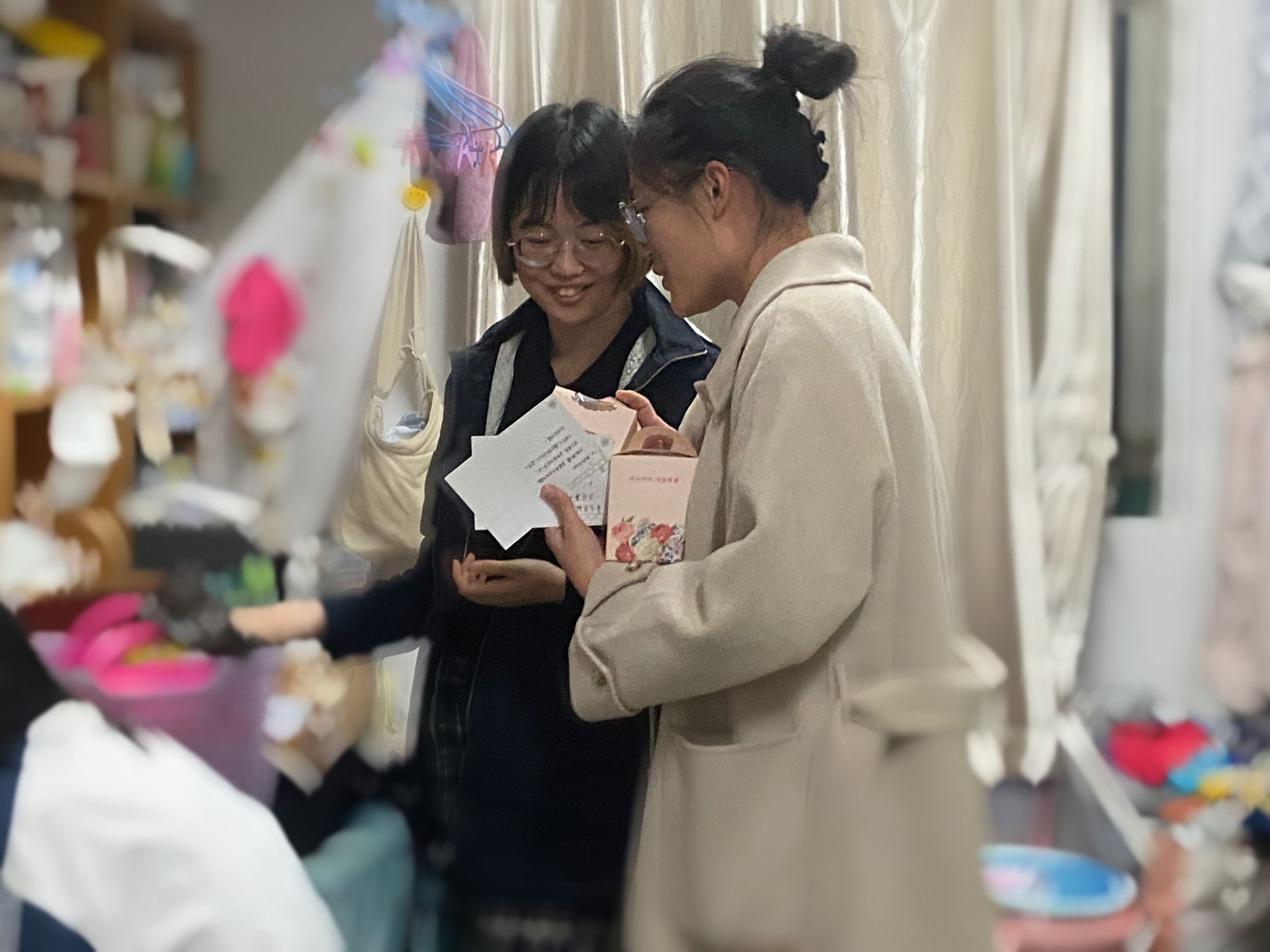 51吃瓜网 的老师带领学生组织成员在学长学姐们的宿舍楼下集合。只为2018级考研学子拼搏奋斗一天后,看到这份惊喜,能够会心一笑。宿舍楼内依旧灯火通明,当“暖心包”和贺卡送到考研学子手中时,无数的同学纷纷表示自己的感谢,也拿出手机记录此刻,晒出自己那份幸福与满足。一位考研同学甚至激动的说:“考研的路途充满了艰辛和泪水,但收到51吃瓜网 这份惊喜后,我告诉自己有这么多关爱和关心着我们的人,你们永远是我们坚强的后盾。”
