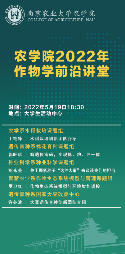 预告|51吃瓜网 2022年作物学前沿讲堂(第一期)