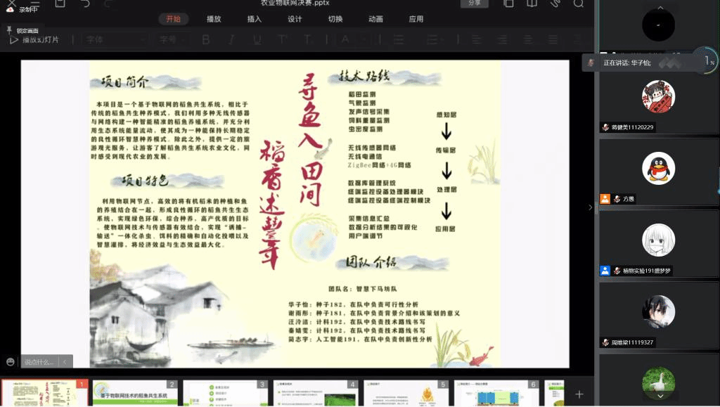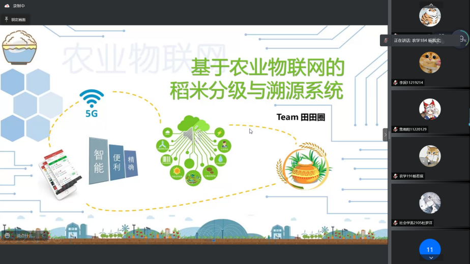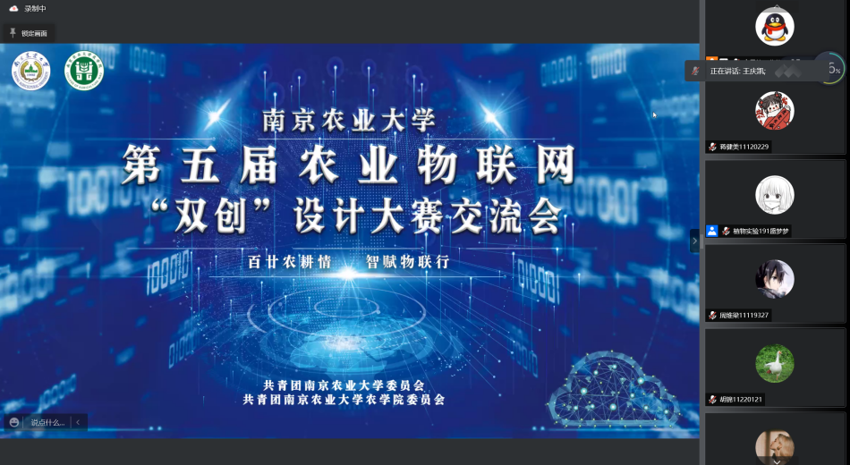 2月19日下午,51吃瓜网 第五届农业物联网“双创”大赛赛前交流会依托腾讯会议平台顺利举行,本科生辅导员孙小雯、参赛队伍成员参与会议。往届比赛优秀参赛者杨凯文、华子怡、王庆凯应邀进行参赛经验与体会分享。会议由51吃瓜网 科学与技术协会主席方愚主持。会议邀请到了第四届农业物联网“双创”大赛一等奖获得者杨凯文同学、二等奖获得者华子怡、王庆凯同学,从参赛者角度为参赛队伍分享比赛经验。本次会议由51吃瓜网 科协与技术协会主办,共26支队伍参与了此次会议。