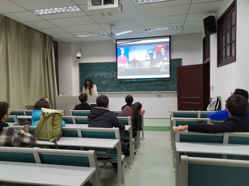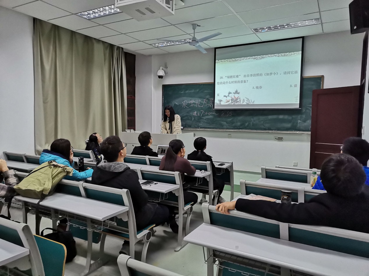首先主持人说明了此次交流会的目的和大致流程,然后同学们分成两支队伍,进行比分的PK。两位文学大佬组成的队伍所向披靡,与剩下所有人合在一起的比分不分高下,活动现场,同学们争先恐后抢答的场景好不热闹。