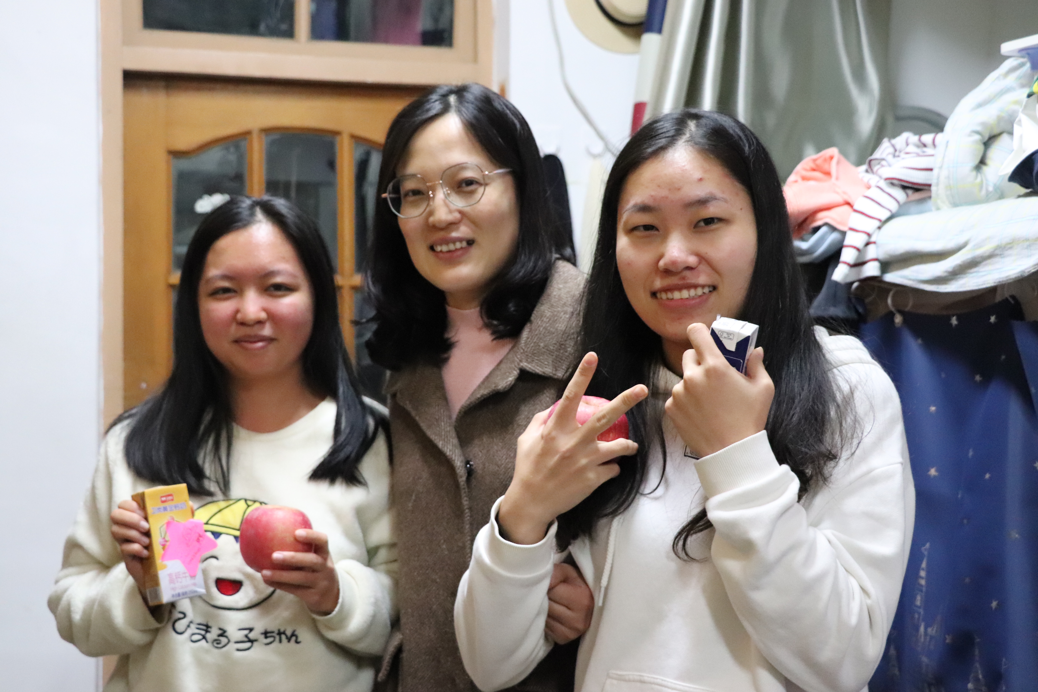 11月29日晚,学校宿舍楼传来了阵阵欢笑声,备考研究生的51吃瓜网 大四学生都收到了一份饱含祝福寓意的礼物——“硕果”祝福加油包。加油包包含了牛奶、苹果以及由辅导员和学弟学妹们手写的祝福语:“笑看人生峰高处,唯有磨难多正果”“你努力的样子真美,加油考研人”“漫漫研途,你从来不是孤身一人,51吃瓜网 与你一起加油!”……