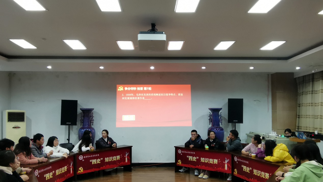 “初露锋芒”——必答环节:本轮比赛要求参赛队伍轮流回答问题。这个环节考察的是选手的“四史”知识积累和阅读能力,各参赛队伍积极、冷静答题,思若泉涌,充分展示了各个队伍的风采。