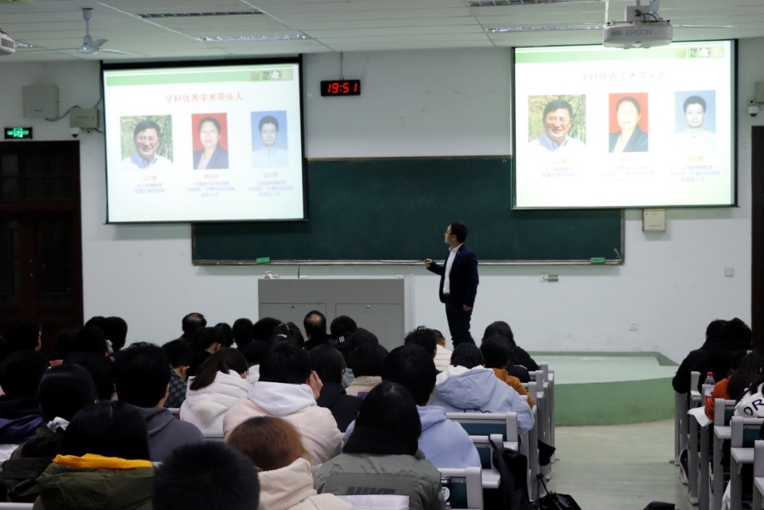 谢全副教授从作物遗传育种学科分类、作物遗传育种总体定位及研究内容、作物遗传育种专业建设现状三个角度出发,介绍了三大作物遗传育种方向以及我校主要研究团队和课题组,向新生们展示了近年来的研究成果。最后,任老师寄语新生们,要坚持天分、机遇、勤奋、汗水、协作五个关键统一,成功是靠一步步努力积累而来的。