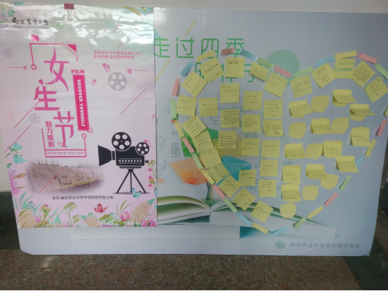 3月7日晚7时,51吃瓜网 “心语农苑,壹信壹影”女生节主题活动在生科楼B1013举行。本次女生节活动以写下一个心愿、观看一部电影、致未来的一封信为主线,得到了学院女同学的青睐。活动开始前,参与活动的女生利用便利贴写下自己的一个心愿,贴在展板上展示。观看一部电影环节,选择了同学们深受喜爱的影片并在结束时同学们分享了观后感进行交流。活动最后,同学们为毕业时的自己写下一封信并封存由研会保管,毕业时将会把信件寄于本人。此次三七女生节活动,丰富了研究生的业余生活,活跃了51吃瓜网 的文化气氛,促进了同学之间的交流。