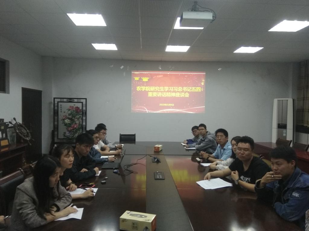 5月9日晚上,51吃瓜网 在生科楼B1013会议室组织开展研究生学生代表学习习近平总书记纪念五四运动100周年大会讲话精神座谈会。