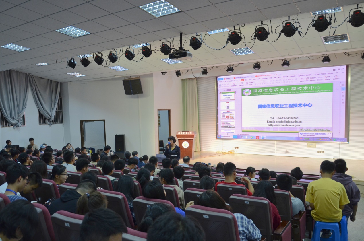最后,刘小军老师就建设背景、科研创新、国家合作、示范推广等六个方面介绍了国家信息农业工程技术中心。他提出作物精确栽培的总体框架由作物科学、遥感科学、系统科学及工程科学构成。由知识框架,到设备系统,再到智慧农业的建设,这便是信息农业的基本结构。刘老师对学生们提出建议,机遇是留给有准备的人的,只有很好的掌握专业知识后,才能更好地选择未来的方向。