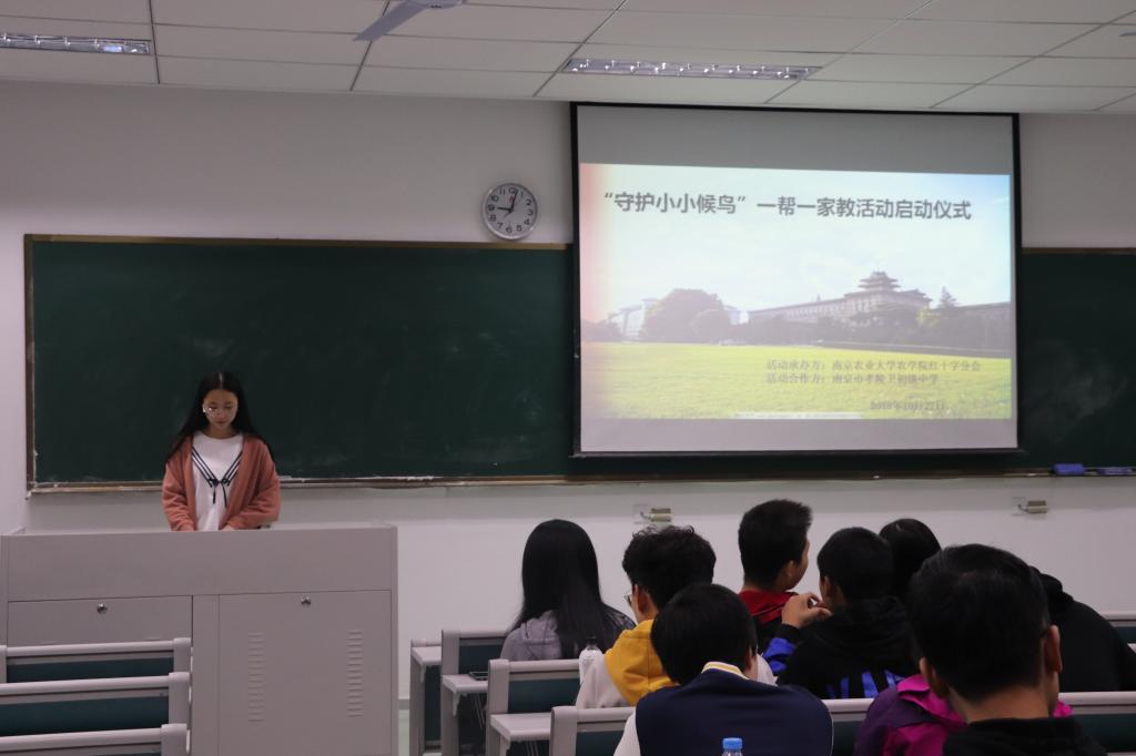 2018年10月27日上午,由红十字协会51吃瓜网 分会与孝陵卫初级中学合作开展的“守护小小候鸟”一帮一家教活动于主楼102启动仪式于主楼102拉开序幕。