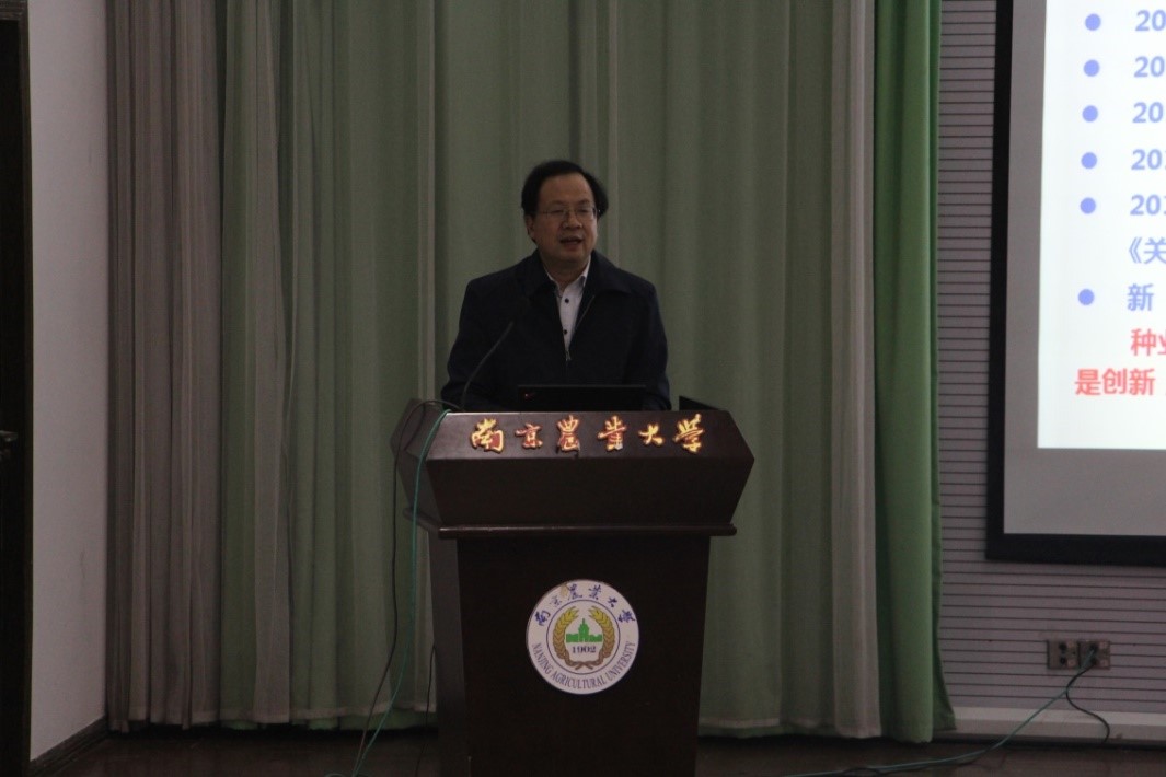 接下来刘康教授以“种子是最重要的生产资料之一”为主题,指出了种业发展潜力大、研发实力在不断增强、市场空前繁荣的优势,分析了种业企业国际实力差距大、科技创新能力不足、知识产权保护不力等问题,明确了要适应农村和农业的转型、实现育繁推一体化、服务体系一体化的发展目标;刘老师还对“如何成为种业人才”这一问题做了充分阐释,告诫农学学子应具备:扎实的基础、三农情怀、健康人格和国际视野。