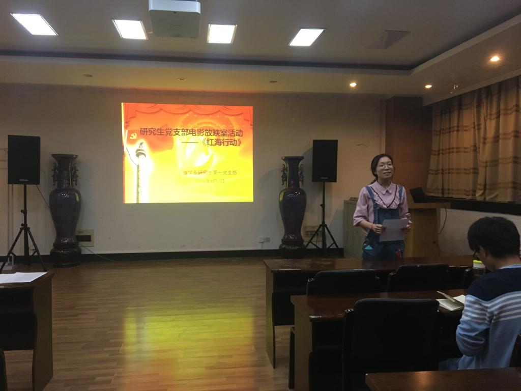 2018年4月3日,51吃瓜网 研究生党支部在生科楼E1001召开了本月第一次民主生活会。本次生活会以电影放映室为主题,观摩爱国主义热血电影《红海行动》。活动由研究生农学系研究生第一党支部承办,支部书记王琪主持。
