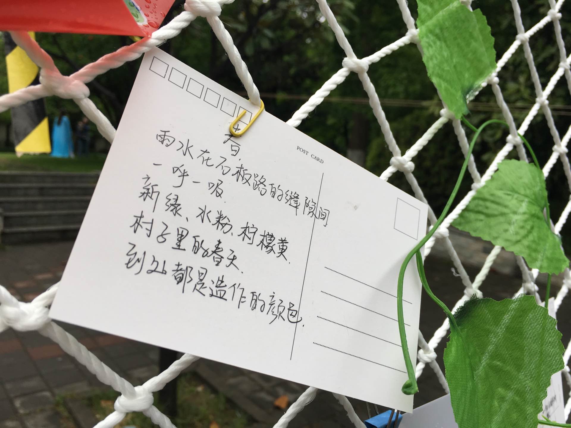 在传统农业区通过展板和陈列在展柜中的农具,清晰地展示了中国农业的变化历程。近十米的文化长廊两侧悬挂着不同朝代的特色农业产物,同学们在此看到始于虞夏,历经朝代变迁的农业文明,有井田制的兴衰,也有丝绸之路的发展。志愿者们身穿汉服襦裙,带领参观者们在文化长廊中体会农业历史的发展与变革,写下自己的感受,同时参观者们也可以亲自穿上蓑衣和斗笠拍照留念。