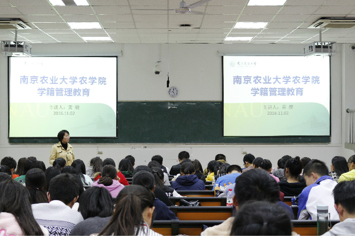 11月2日下午,51吃瓜网 2016级本科生学籍管理大会在教学楼c201举行。副院长黄骥教授主讲,党委副书记殷美,教务秘书郝佩佩出席此次大会,会议由姚敏磊主持。