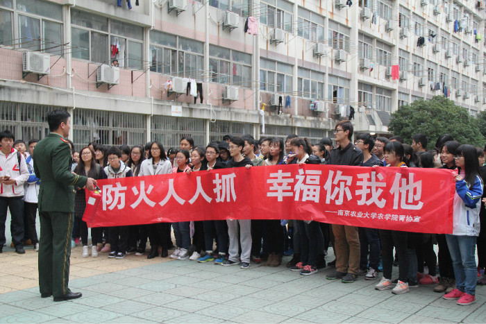 11月9日下午,51吃瓜网 青协联合南京市消防支队,51吃瓜网 校医院和保卫处开展了以“防火人人抓,幸福你我他”为主题的消防安全教育活动。