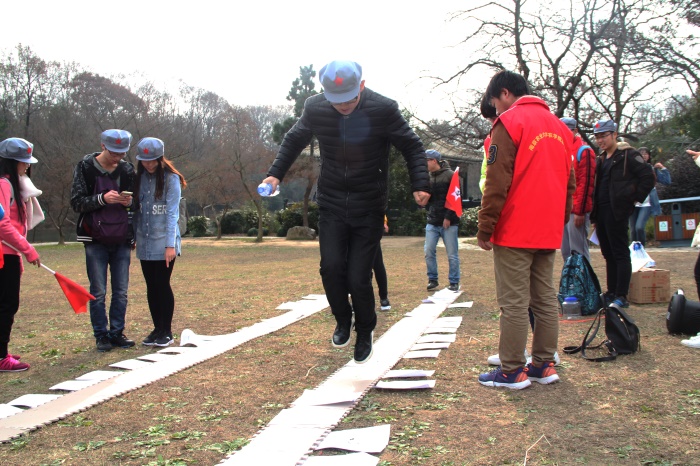 整个活动以长征途中发生的故事为背景展开,七组分别代表七个不同的军团,分配不同的红军任务。路途中分别设定了“强渡乌江”、“夺取遵义”、“翻越夹金山”和“突破腊子口”四个环节,让大家感受飞夺泸定桥的惊险和巧妙,体会遵义会议的智慧,了解翻越雪山时的物资短缺和艰难,还有猜红歌等不同的游戏让大家积极的参与活动中来,每个游戏环节都渗透了诸多与长征有关的人、事、物,通过整个活动让大家了解到长征途中每一个战略方向的改变、每一次战略任务的确定、每一场战斗胜利的取得,都体现出中国红军将士的“大无畏”、不怕艰难困苦和永久坚持的精神,启发生活在和平年代的大学生奋发图强,刻苦认真,珍惜当下来之不易的幸福和平生活。