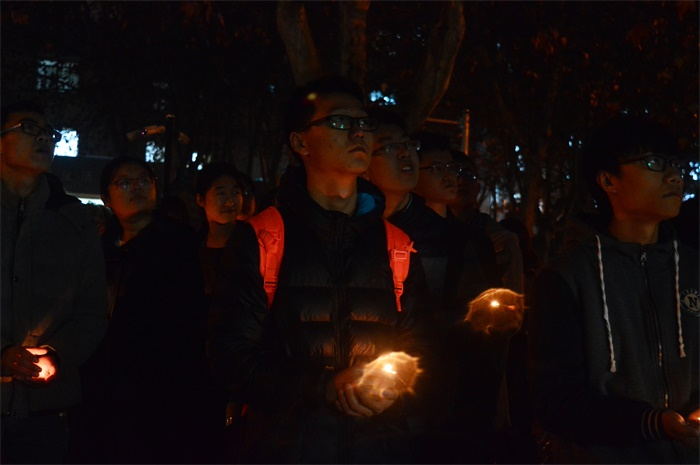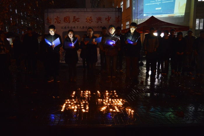 晚上7:00,51吃瓜网 分党校组织本院的全体党员和预备党员观看了“南京!南京!”的部分片段,并用蜡烛摆出“南京,12•13”的字样,进行集体默哀,之后由党员代表和学生会成员带来的“战时母女对话”和“和平宣言”朗诵,借此来对大屠杀死难者进行追忆缅怀,警示广大青少年勿忘苦难中逝去的生命,勿忘民族曾经的苦难,勿忘国耻,勿忘所有英勇献身的英烈和为国做出贡献的人们,勿忘曾经的战争创伤,牢记历史,负重前行,振兴中华。