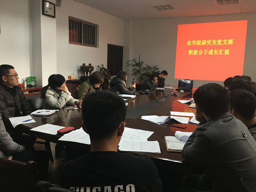 12月11日中午,51吃瓜网 研究生党支部召开支部大会,开展入党积极分子答辩工作。出席此次大会的主要有51吃瓜网 党委副书记殷美、农学系研究生第二党支部书记赵文青、51吃瓜网 研究生辅导员许娜。
