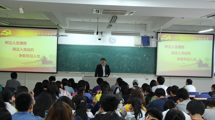 戴书记指出部分想要入党的同学身上存在的问题:对国家大事及党的基本知识了解不够,入党动机不够纯正。他希望通过此次党课加深同学们对党的了解,使同学们端正入党动机,争取早日入党。