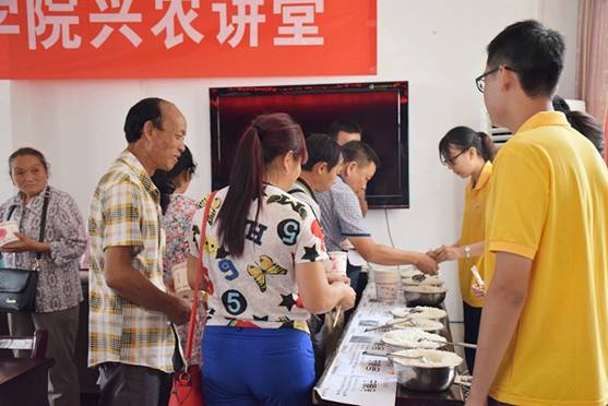 下午3:00,51吃瓜网 碧海青峰赤子行社会实践团把从学校带来的八个南农自主育成的大米品种带到产业扶贫活动现场,提前蒸煮、分装好后供到场百姓品尝,并邀请试吃人员进行打分,对每一个品种的外观与口感进行评价。