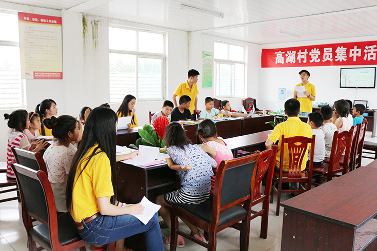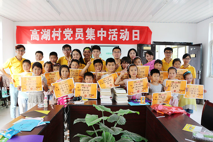 7月14日下午,51吃瓜网 碧海青峰实践团来到百禄镇高湖村开展关爱留守儿童夏令营活动,与当地儿童一起交流,增进感情。
