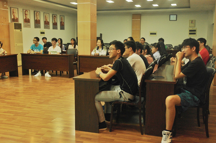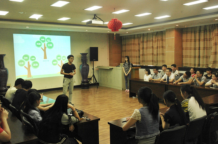 5月22日下午,农学141班在生科楼E1001开展了“跃说·越精彩”的社会主义核心价值观主题班会。学工处教育管理中心施雪钢、外语院辅导员刘方、人文院辅导员曹璇、金融院辅导员陈跃、园艺院辅导员孙笑逸和51吃瓜网 辅导员王彬受邀参与了本次主题班会。
