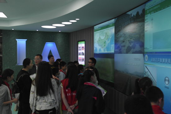 信息化时代,物联网正悄然兴起。在信息农业实验室,同学们参观了远程监控实验室。当得知从小小的实验室中能观察到远在江苏宜兴、江西的种养殖场的现场情况,同学们不光感到惊讶更多的是好奇,不断向带队的博士生提问,极大地激发了孩子们对科研的兴趣。而对千里外的田间管理,只需在这边的实验室里动下鼠标,或者用手机遥控下就可以完成,同学们更吃惊于现在农业技术的发展之快。在农业信息产品的研发试验实验室,一个监测作物生长水平的飞行器更是打开了同学们的思维空间,引领大家不断地思考它的监测指标,把气氛带到了高潮。